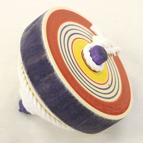 練習しないとなかなか出来ない投げこま。巻き方から投げ方まで、とってもコツか必要です。ですので、お子様と一緒に遊べば、きっと良いコミニュケーションの場となる事でしょう。木製で、やや重めです。