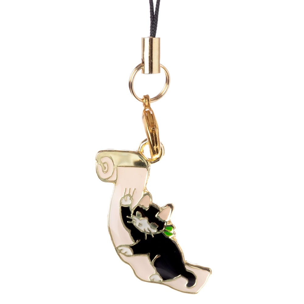 可愛らしい猫たちがそれぞれ道具を使いこなし、まるで人のように暮らす姿をストラップにしました。ただ、その道具の使い方は果たしてあっているのか?猫らしい使い方で楽しむ姿がかわいらしく、いろいろと想像が膨らむイラストになっています。ピンバッヂと同じ仕様になっており、違いはストラップになっていること。ものによっては、ぶら下がるというストラップの特性を活かしたイラストもあります。携帯はもちろん、ペンケースやポーチ、財布などにつけてお楽しみください。