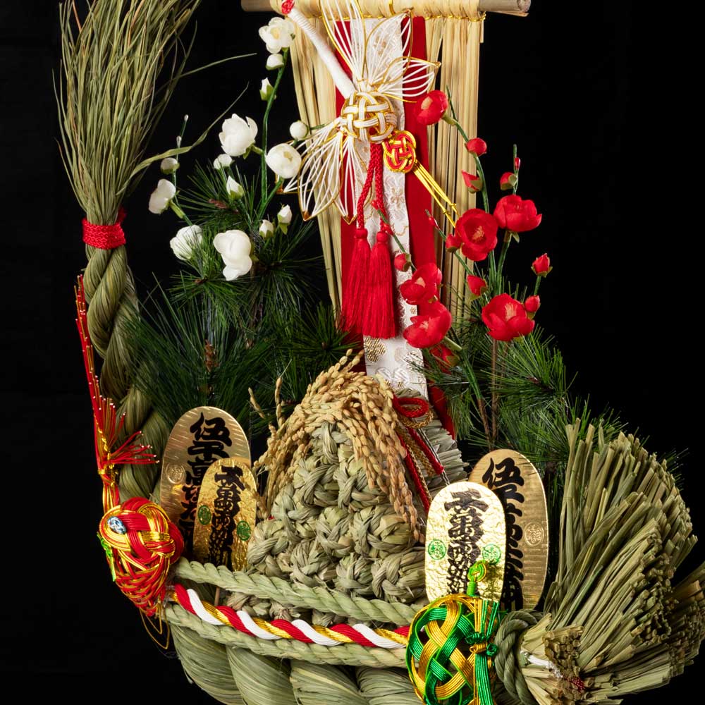 正月飾り 注連飾り 竹治郎 宝船(大) 新潟県南魚沼の正月飾り 開運祈願 一年飾れる招福飾り 見栄えのする玄関置き飾り 日本製 Japanese New Year decoration made of straw