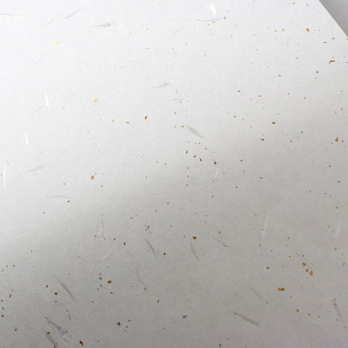 レーヨンの白い繊維を漉き込み、金と銀の粉末を散りばめた、綺羅びやかな和紙です。