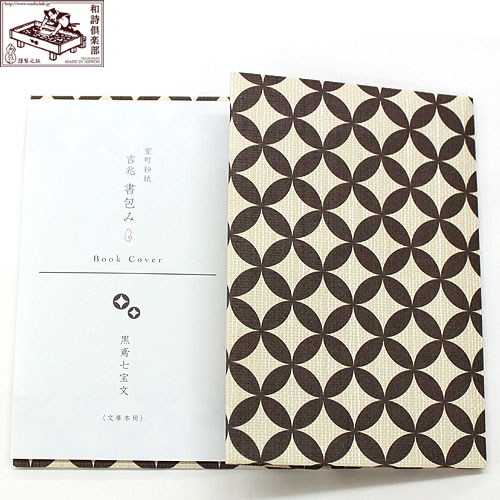 吉兆書包み 黒鳶七宝文 (BC-015) 室町紗紙ブックカバー 文庫本用 和詩倶楽部