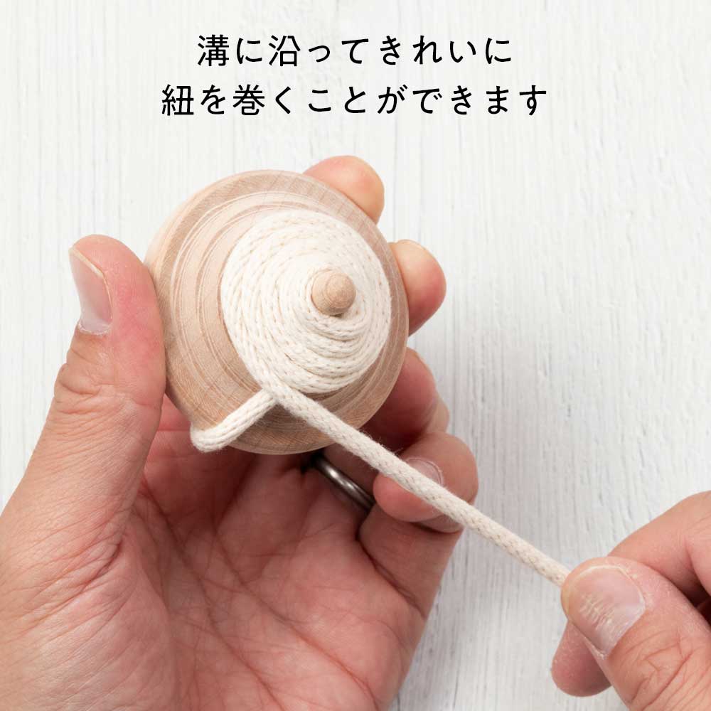 芯棒と一体型の独楽で、独楽の下部に螺旋を入れる事により巻きやすく、回しやすくなっています。