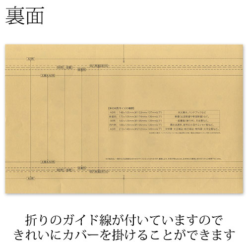 本のサイズに合わせて、ブックカバーを折って包むタイプなので、いろいろなサイズの本に対応しています。
