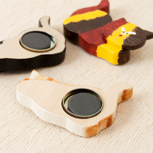 立てて飾れる猫のマグネット 北海道の工芸品 Cat magnet Wooden ornament Hokkaido craft