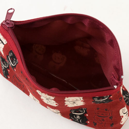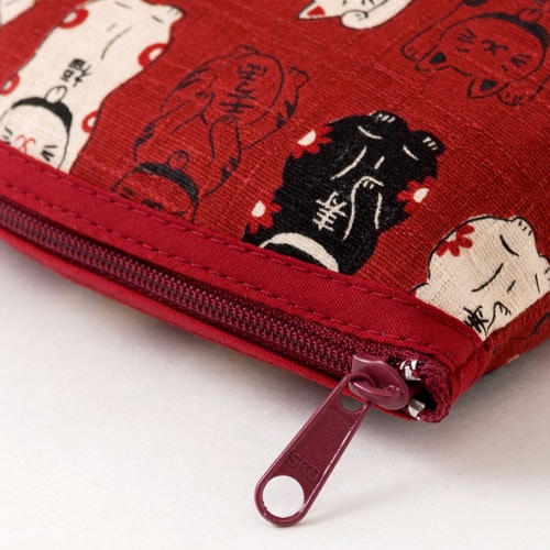 笑福猫のねこづくしポーチ 赤 化粧ポーチ Lucky cat pattern pouch