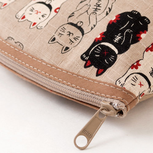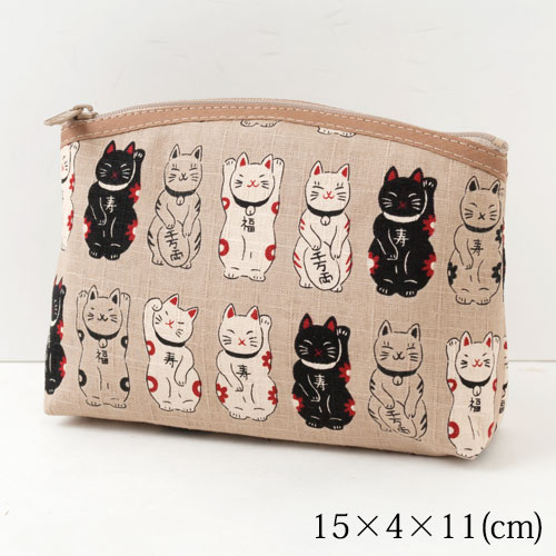 笑福猫のねこづくしポーチ ベージュ 化粧ポーチ Lucky cat pattern pouch