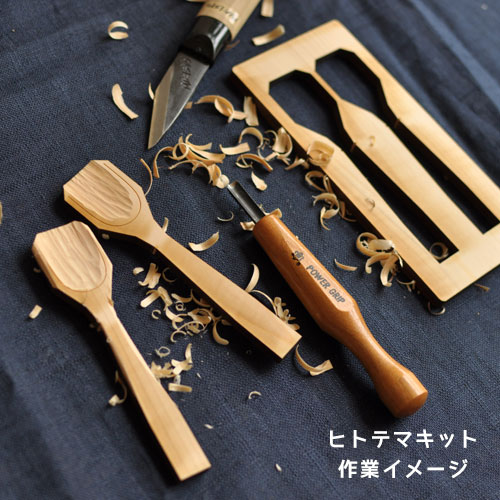 ヒトテマキット ディナースプーン けずってみがいて自分でつくる木製食器工作キット Wooden spoon craft kit