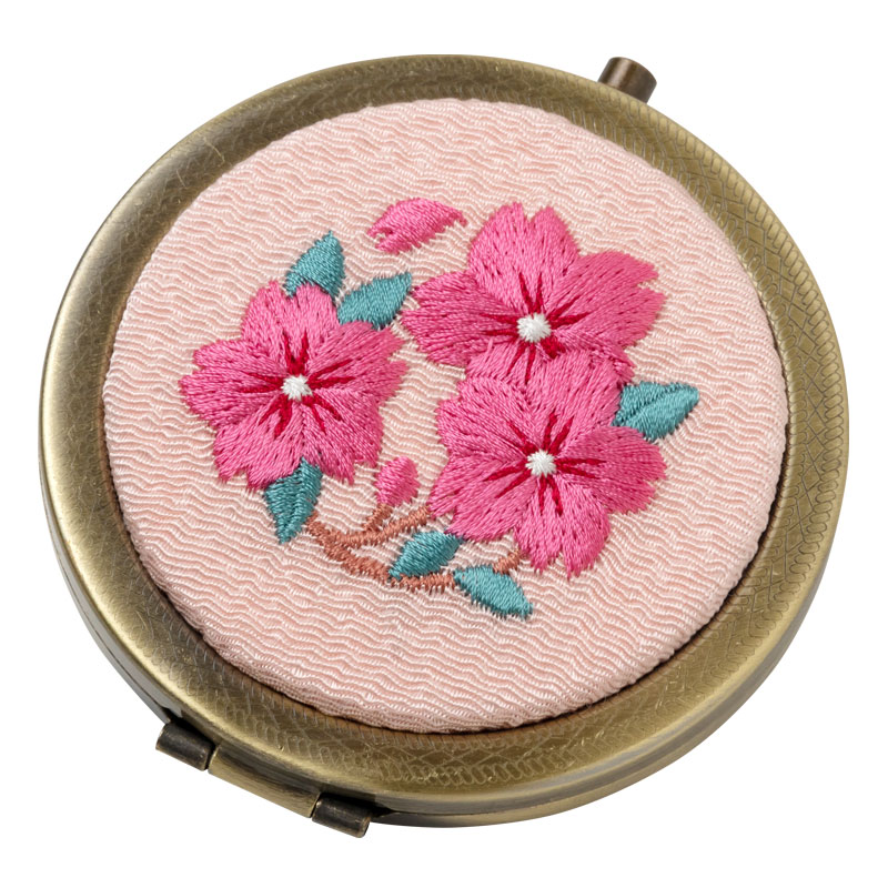 和刺繍コンパクトミラー 桜 スーベニール Japanese flower pattern embroidered compact mirror