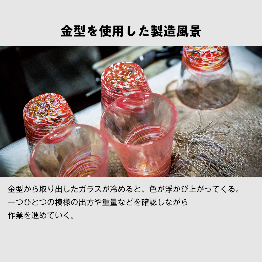 ※ガラス職人が一つ一つ手作りするため、サイズ・柄・容量等多少のバラつきがあります。