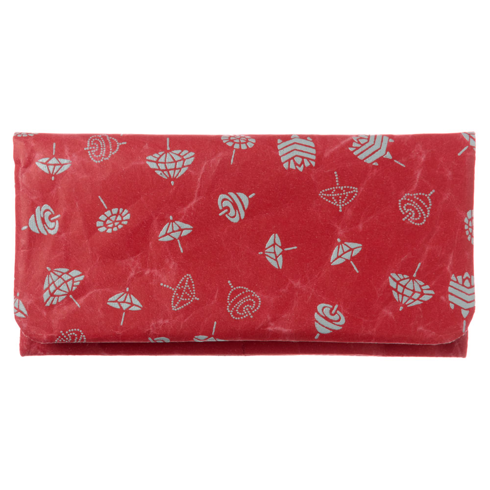 SIWA|紙和 長財布 駒 レッド×浅葱鼠 和紋型染めの破れにくい紙・ナオロン製財布 山梨県の工芸品 Durable paper wallet