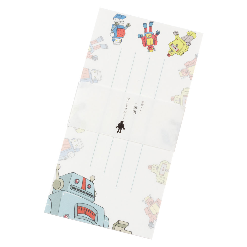 昭和レトロ一筆箋 ブリキロボット 同柄25枚綴り 8×16cm 紙匠雑貨エモジ Mini letter paper