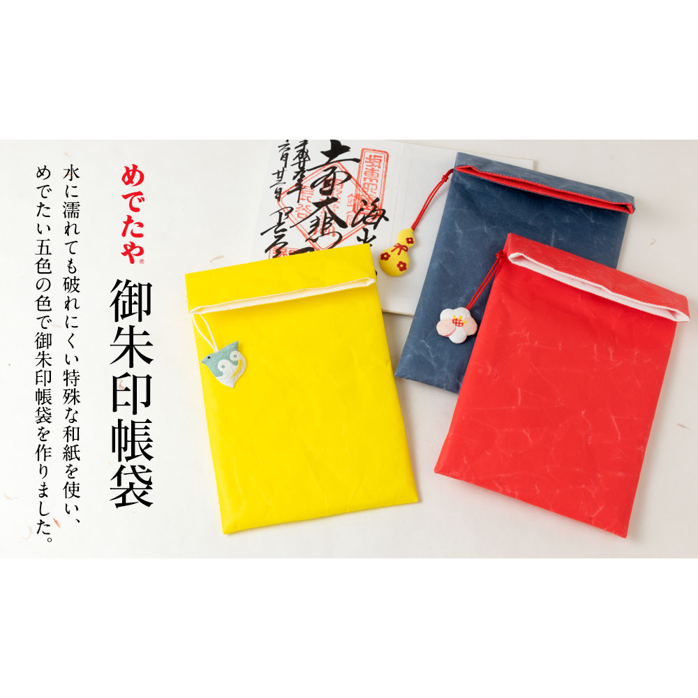 水に濡れても破れにくい特殊な和紙を使い、めでたい五色の色で御朱印帳袋を作りました。