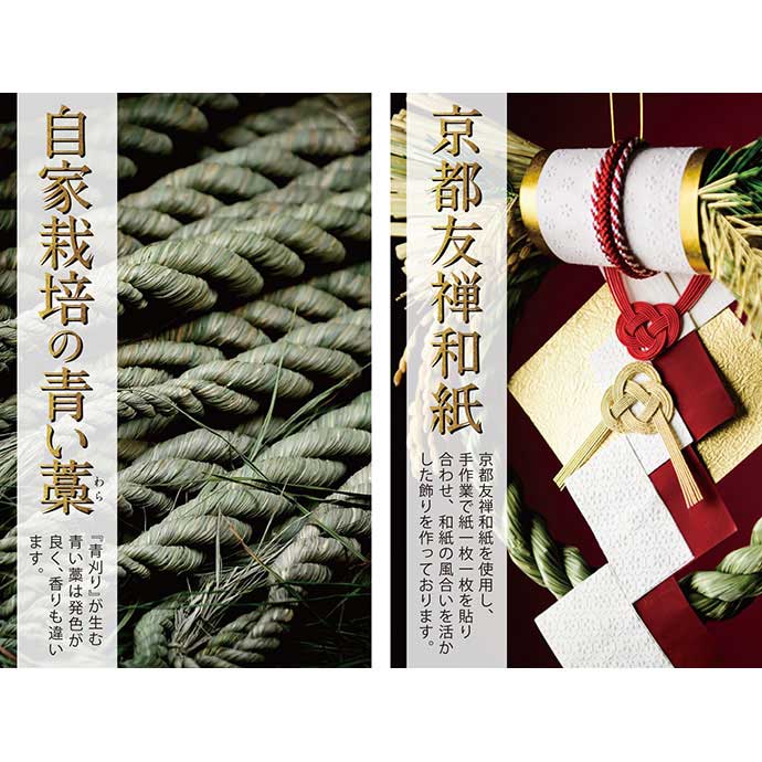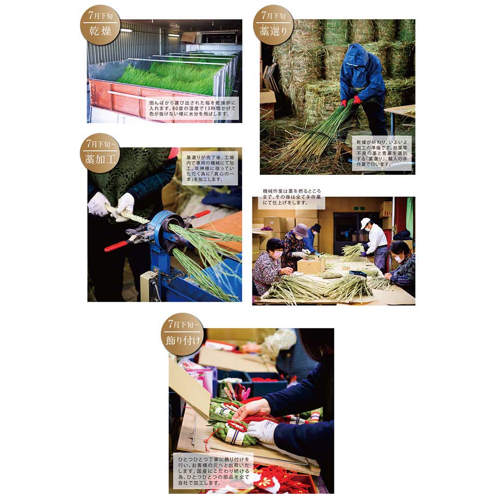 特に飾りの骨組みとなる稲わらには、新潟県南魚沼産のものを使用し、栽培から加工までを自社で行っております。