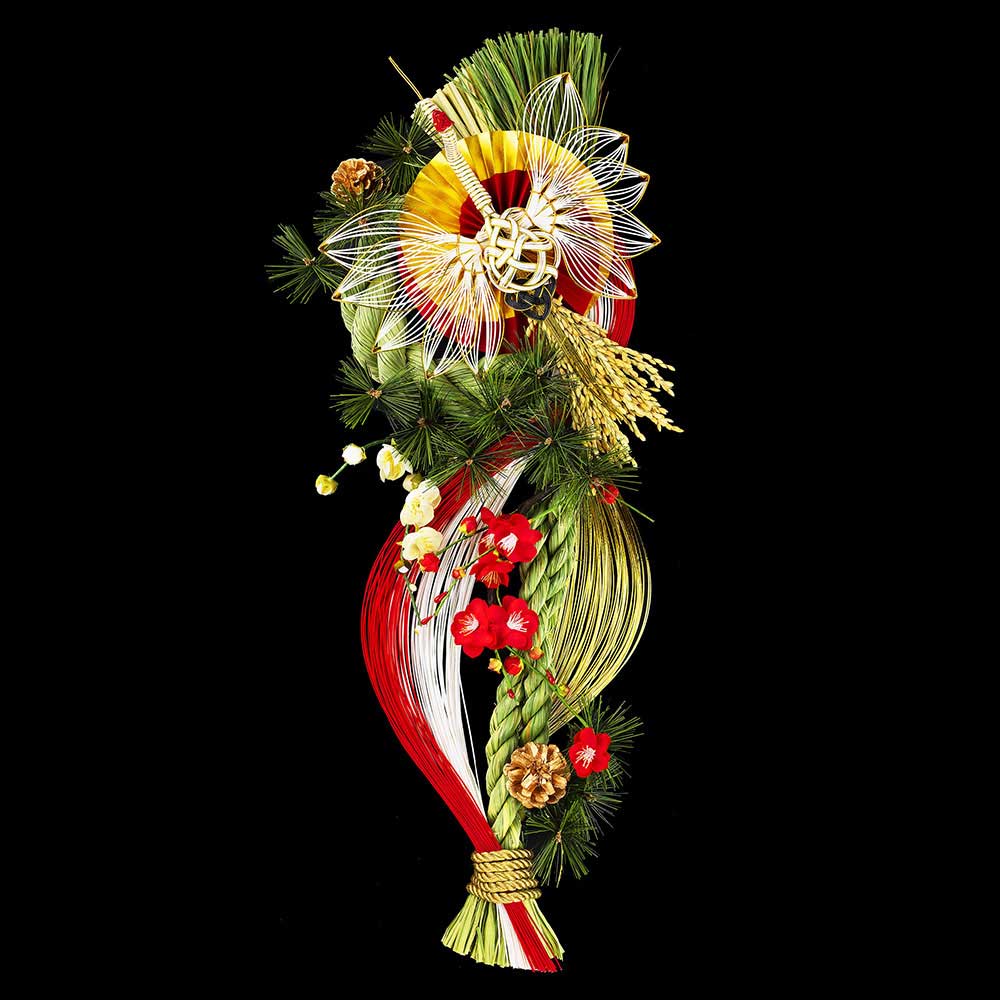 その素材からこだわるスタイルを持つ「竹治郎」のお正月飾りは、国内では見る事の出来ない、とても大胆で優美な独特のスタイルを持つ飾りばかりです。