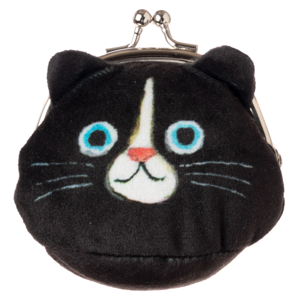 猫のフェイスがま口ポーチ くろ ECOUTE! minette 小銭入れ まあるいおめめのキュートな猫たち