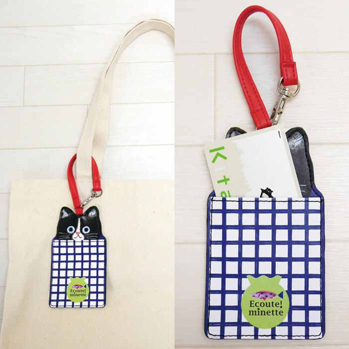 猫ニャンコパスケース くろ ECOUTE! minette 定期入れ まあるいおめめのキュートな猫たち