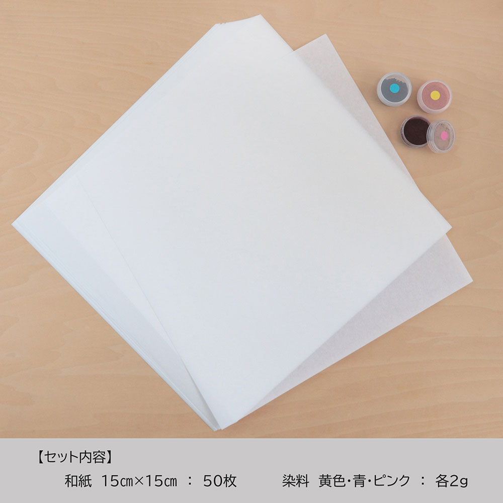 セット内容:染料(青・黄・ピンク各色2g)・和紙50枚