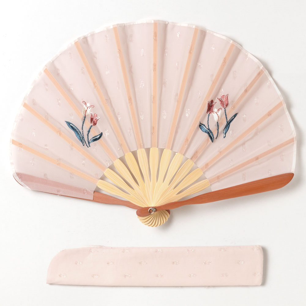 ガーデン刺繍扇子セット2020 チューリップ 刺繍入り布貼り扇子 扇子袋付き 女性向け スーベニール Sensu fan