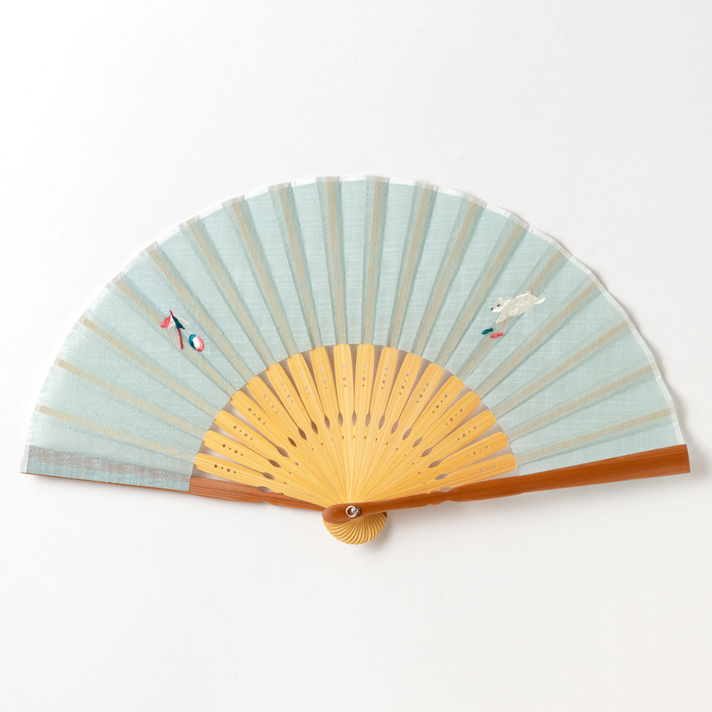 動物刺繍扇子2020 しろくま 刺繍入り布貼り扇子 女性向け スーベニール Sensu fan