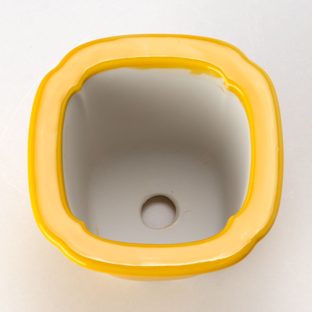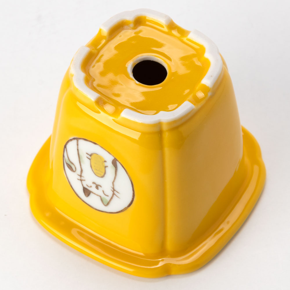 風水猫ミニ植木鉢・黄 (K4631) 瀬戸焼の植木鉢 愛知県の工芸品 Flower pot Seto-yaki