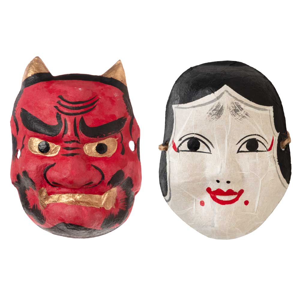 壁掛け節分飾り 鬼の面とおかめの面(小) 和紙製 Japanese paper ogre and okame ornament