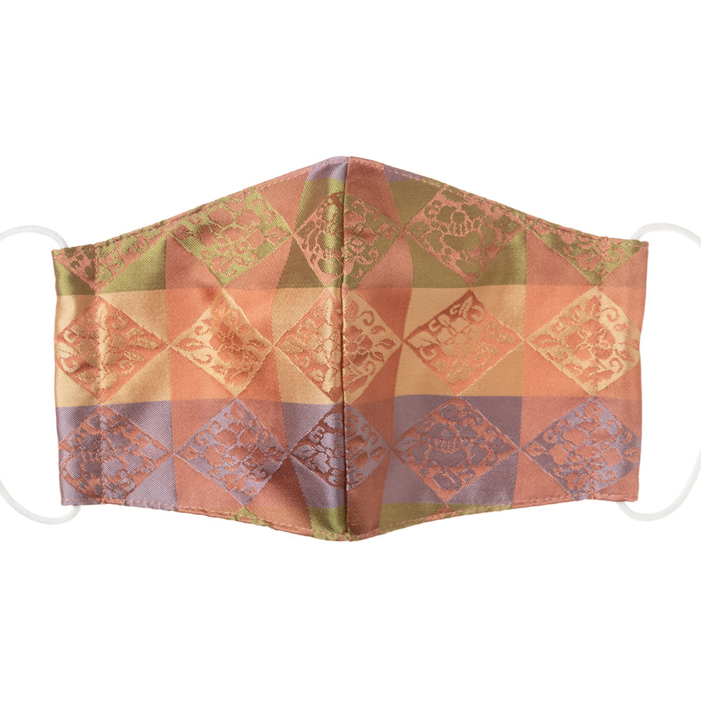 京都 あらいそ 西陣織名物裂 和装マスク043 菱石畳花文緞子 正絹織物とガーゼを組み合わせた和風スタイルマスク 男女兼用 Kyoto nishijin Face mask