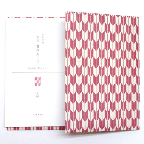 吉兆書包み 矢絣 (BC-041) 室町紗紙ブックカバー 文庫本用 和詩倶楽部 Japanese pattern book cover Washi club