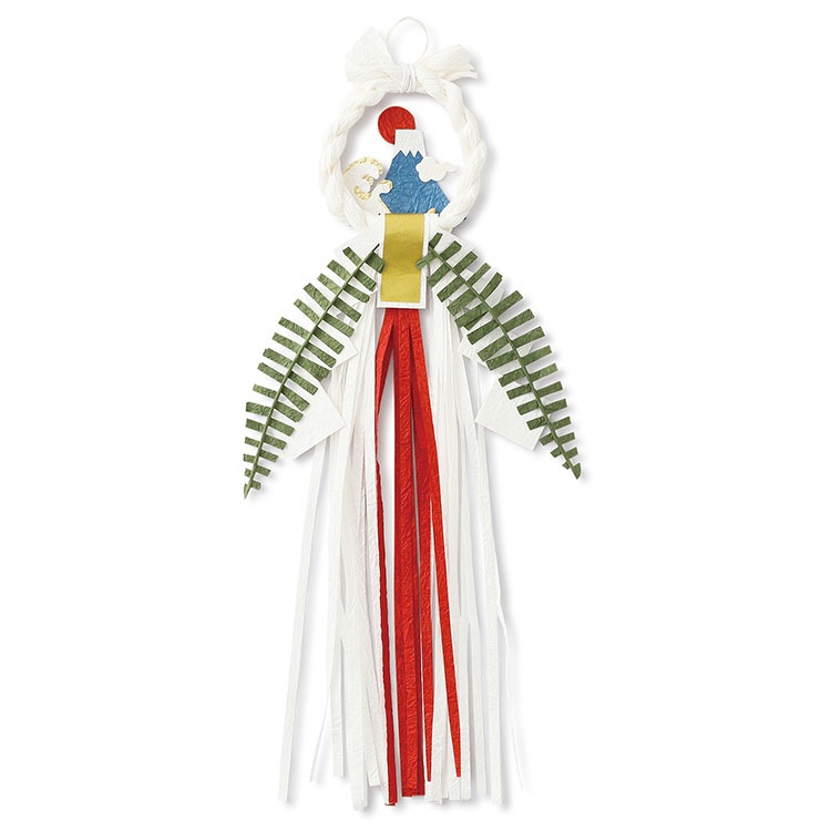清浄さを表す紙垂、潔白を象徴するウラジロ、たっぷり長くとった紅白の和紙がお正月のめでたさを象徴しています。