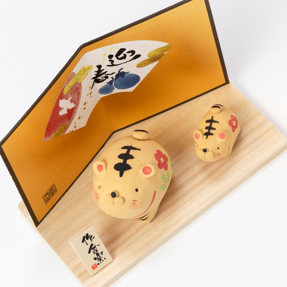 正月干支飾り 寅 ほのぼの親子飾り (K22-30) 工房SAO 瀬戸焼 Setoyaki Pottery ornament New Year decoration