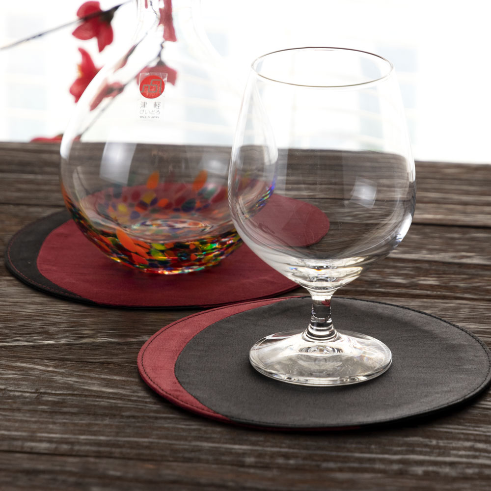 百道発信 かぐ夜 三日月サークルS ブラック×レッド (IKI-1500) リバーシブルコースター φ14cm 福岡県の布製品 Fabric coaster Fukuoka craft