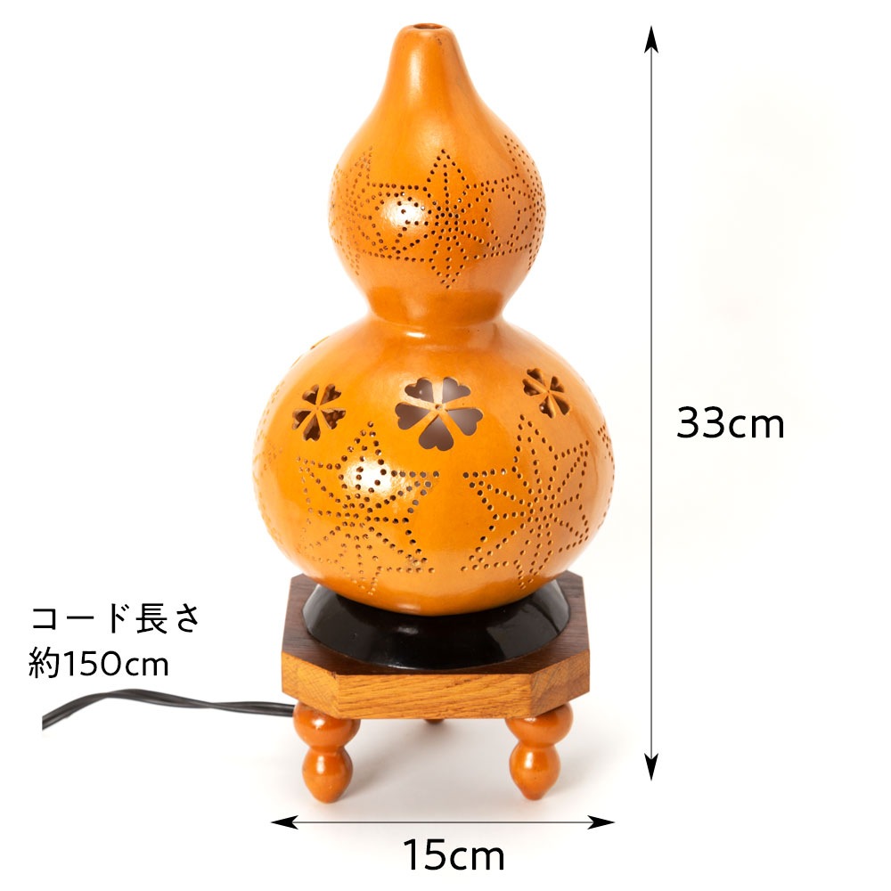 上州瓢箪 行灯 ランプシェード015 麻の葉小花紋 高さ33cm ひょうたんから作られたインテリアライト 群馬県の工芸品 作者:天笠修次 Lamp shade of gourd, Gunma craft