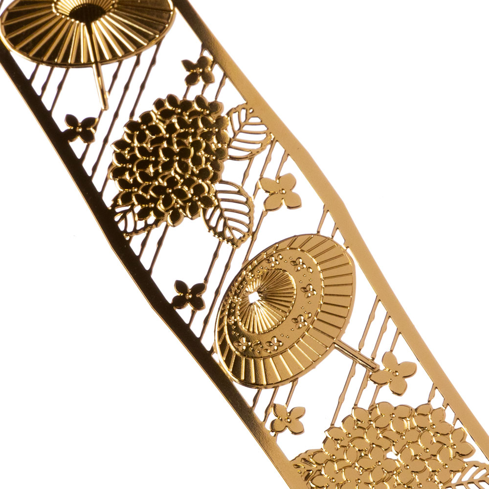 和柄ブックマーカー 紫陽花と和傘 (WAG027) 金の栞シリーズ 24K表面加工 金属製ブックマーカー Metal bookmark, Japanese pattern