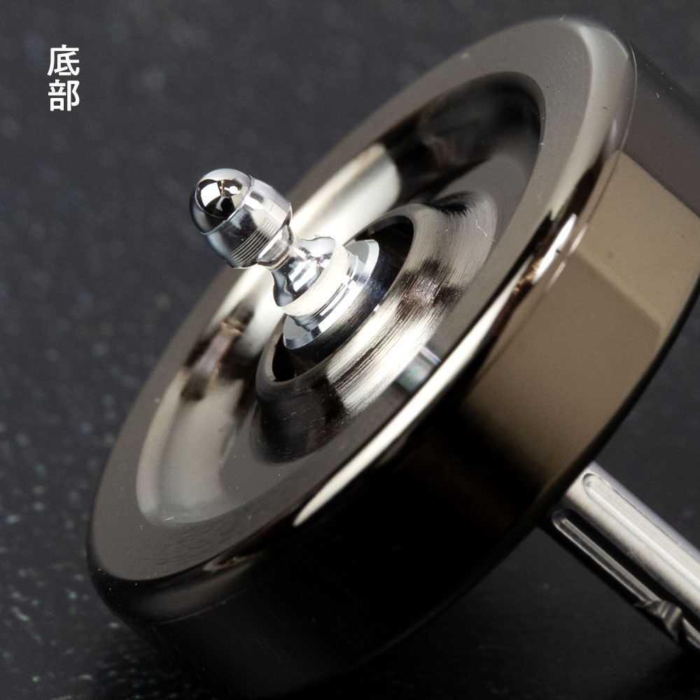 また、コマが回転する軸の先端部には、地球で最も真球に近いとされる天辻鋼球製作所の鋼球を使用。