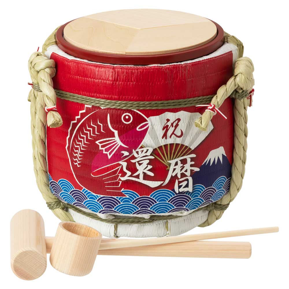 内容:ミニ鏡開き本体1個・アクション鏡板1枚・ミニ木槌1本・ミニ木杓1本・朱桶1点・取扱説明書