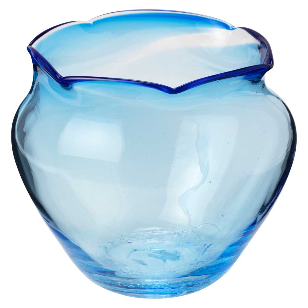 吹きガラスの金魚鉢 大001・青 宙吹き製法で作られたハンドメイドの硝子工芸品 滋賀県の吹きガラス工房より 置物 インテリア 日本製 Glass goldfish bowl Shiga craft