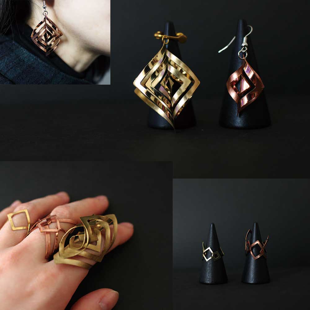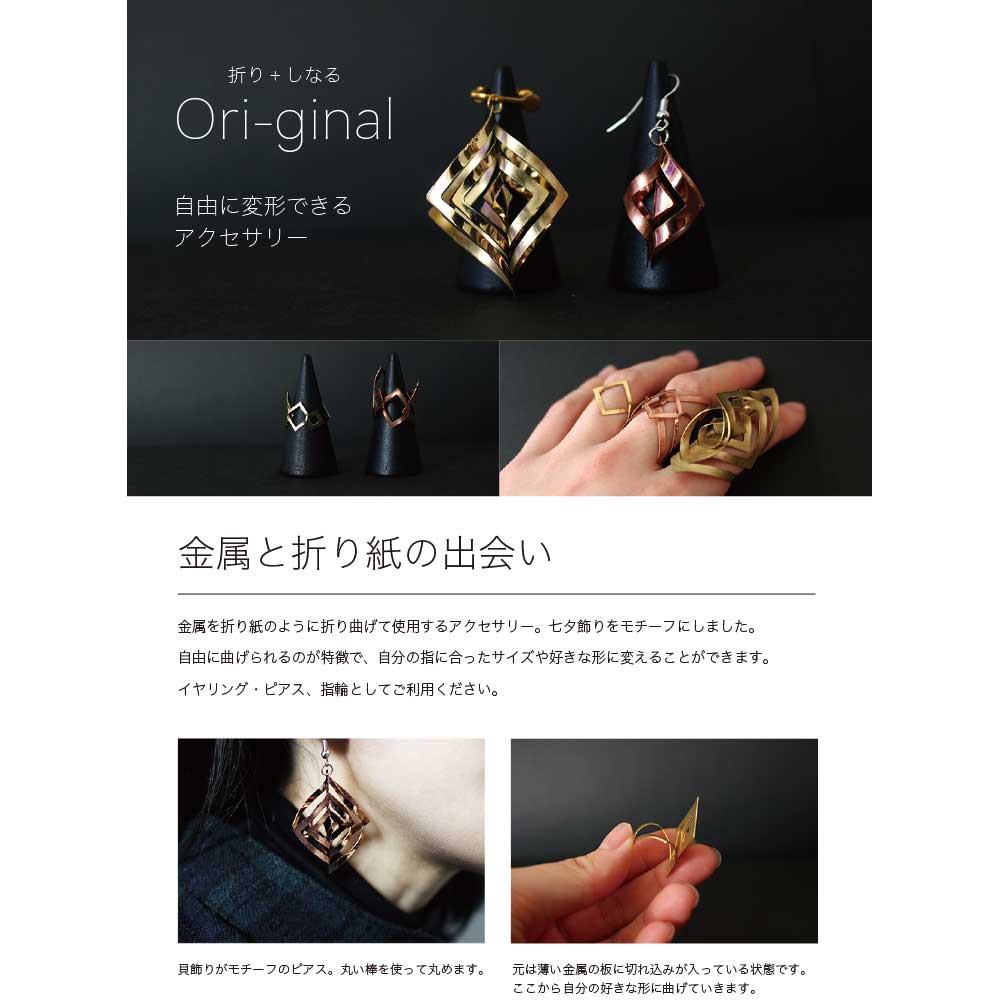 金属を折り紙のように折り曲げて使用するアクセサリー。