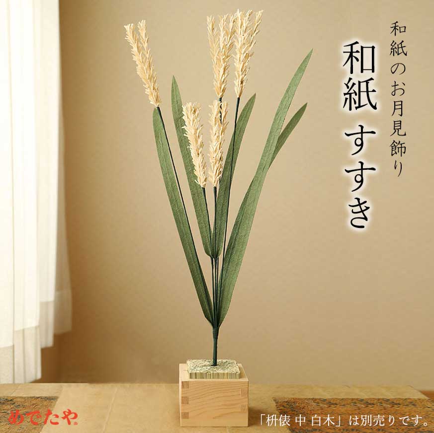 十五夜のお供えや、秋のインテリア、飾りつけにお使いいただける和紙のすすきです。