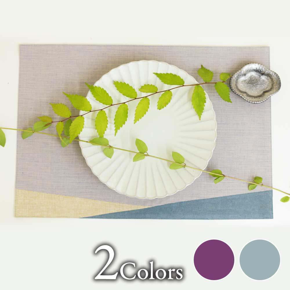 百道発信 和歌 ランチョンマット (IKI-1549) 45×31cm 福岡県の布製品 三河木綿 大きめサイズのプレースマット 紫/灰 綿・麻 日本製 Fabric place mat Fukuoka craft