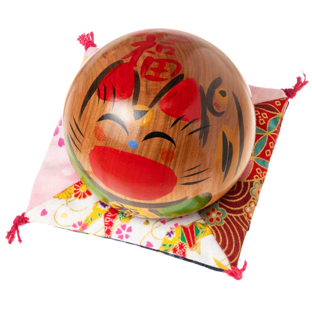 丸い体は円満を、地震でも絶対に倒れない事から「商売繁盛」「繁栄」そして招いた福を絶対逃がさず留めて置く事を表しています。