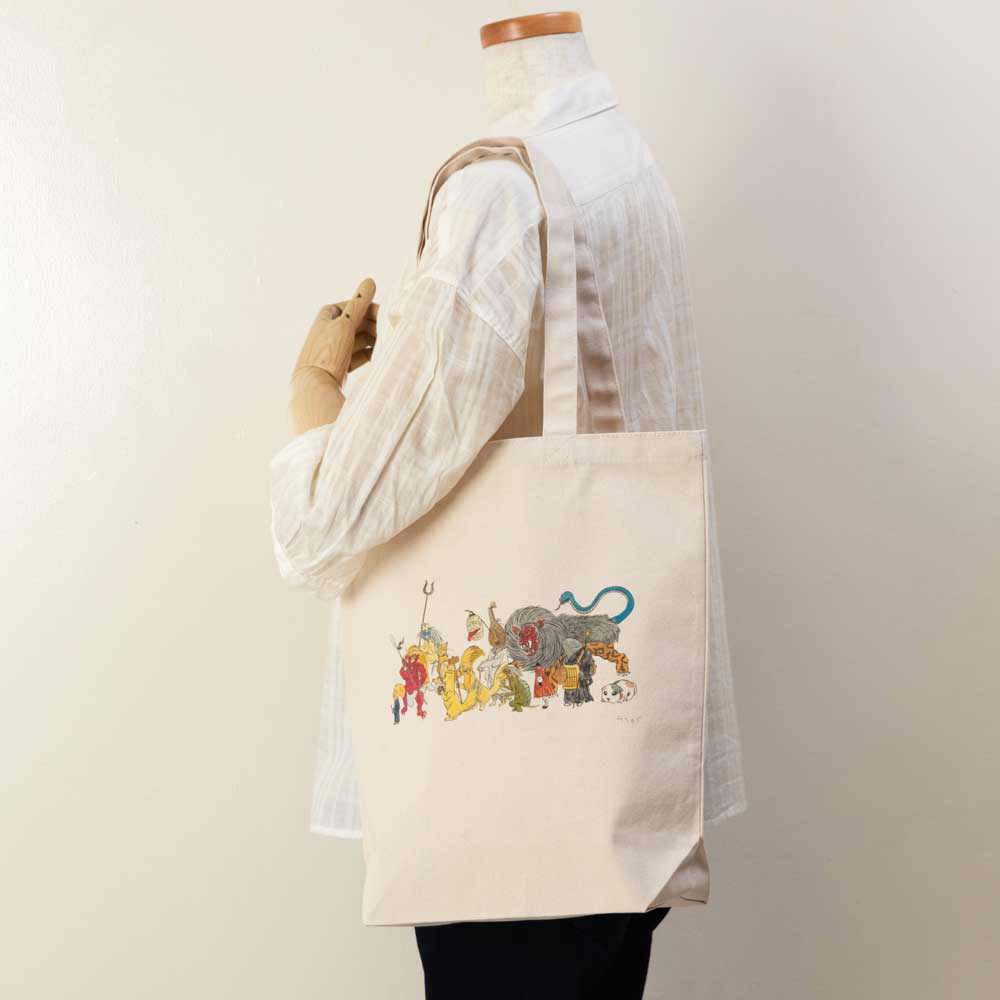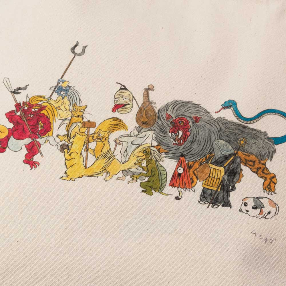 和詩倶楽部 ハコビムシ トートバッグM 妖怪絵巻 コットンの丈夫な手提げ袋 ばけもの おばけ 個性を活かすのは協調性