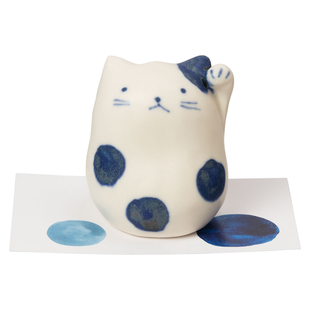 招き猫置物 染猫 招き・丸 RRスタジオ 瀬戸焼の開運アイテム 日本製 愛知県の工芸品