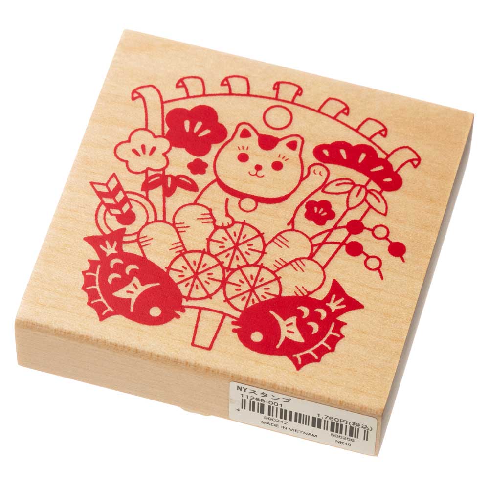 こどものかお ニューイヤースタンプ大 熊手招き猫 年賀状 挨拶状 ラバースタンプ ゴム印 はんこ 判子