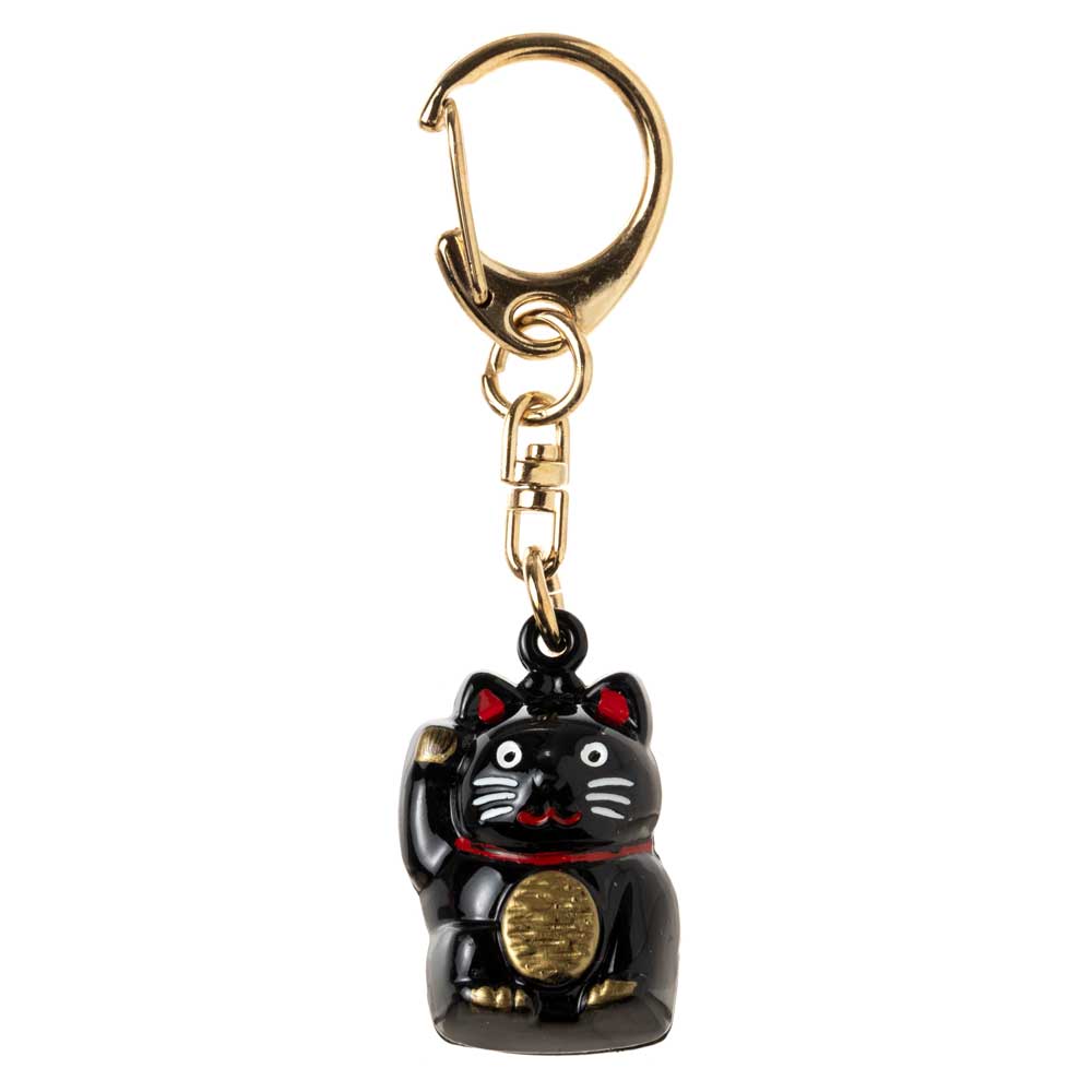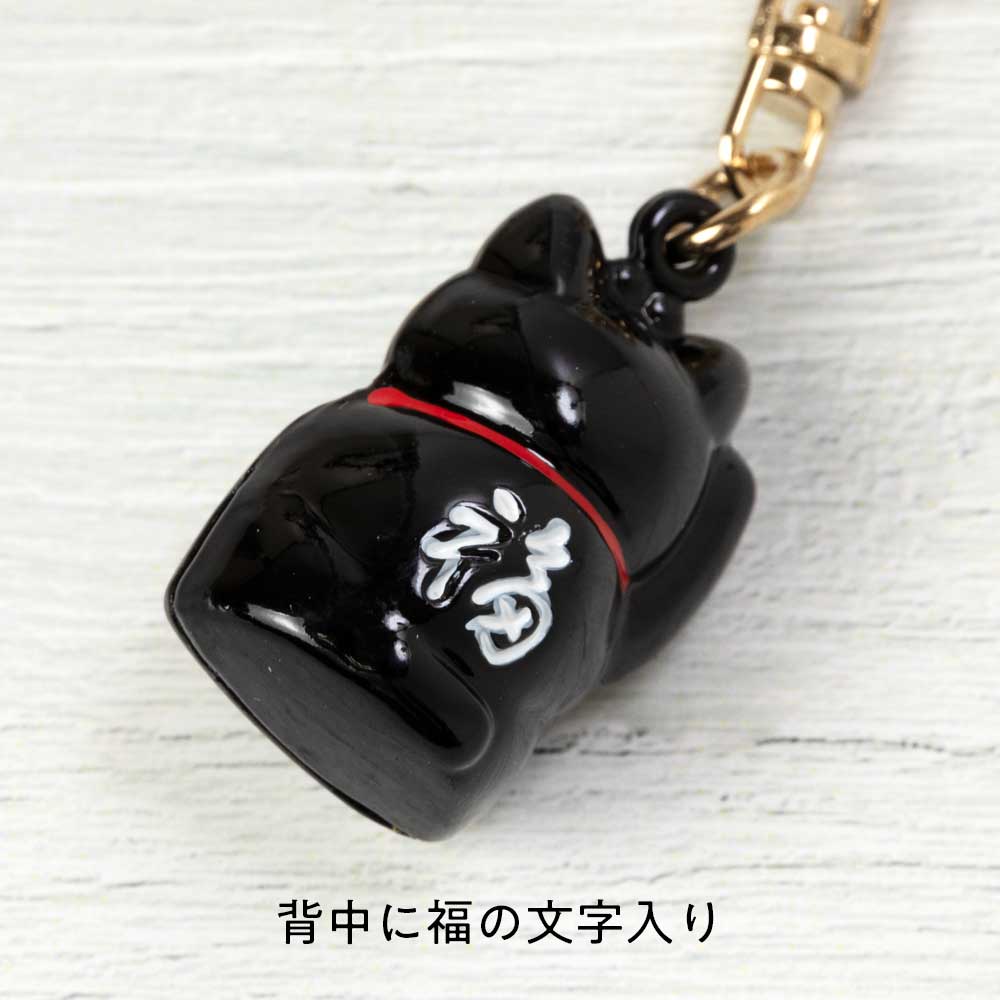 招き猫キーホルダー 黒 鈴タイプ お金を招く右手上げ 金運上昇の小さな縁起物 バッグや財布にも