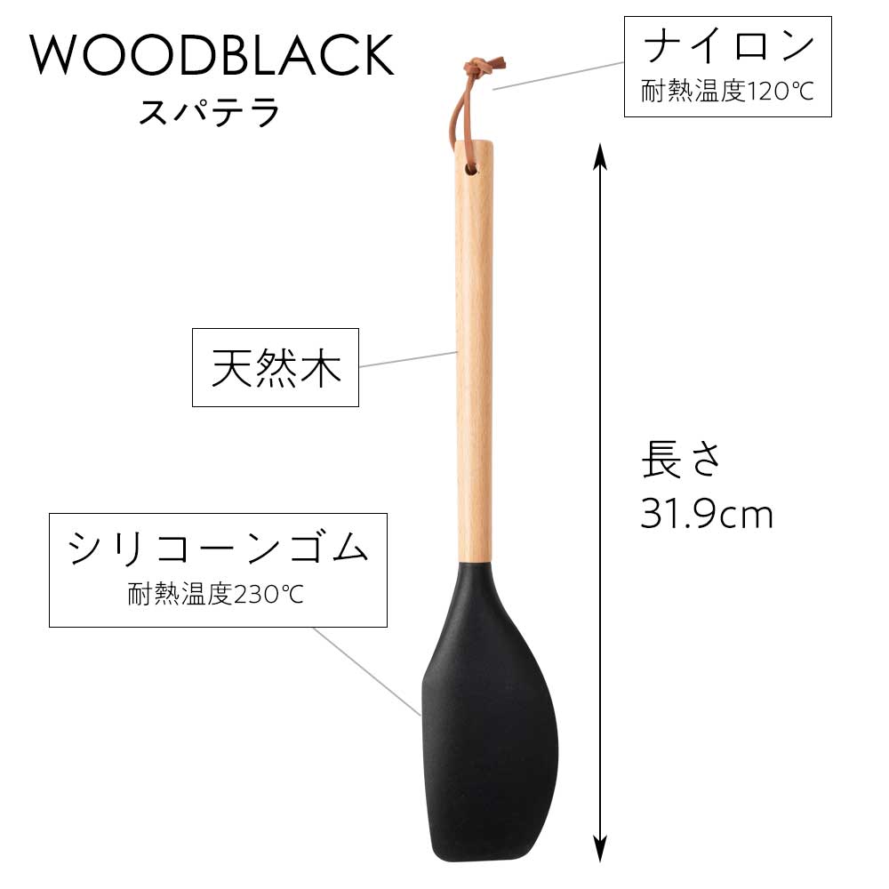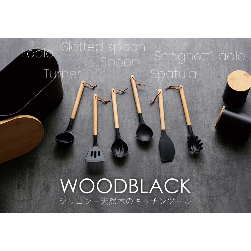 ウッドブラックシリーズは、天然木とマットブラックなシリコンゴムを組み合わせた、シンプルモダンなキッチンツールです。