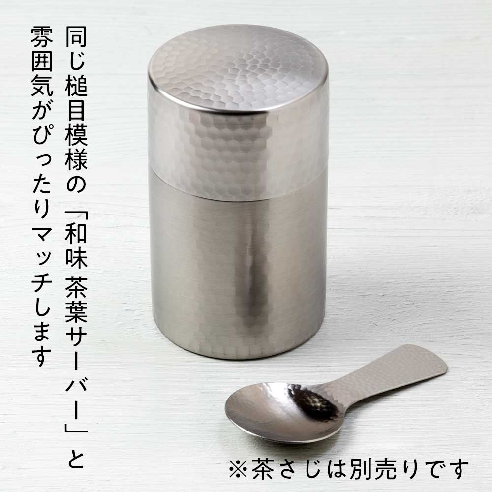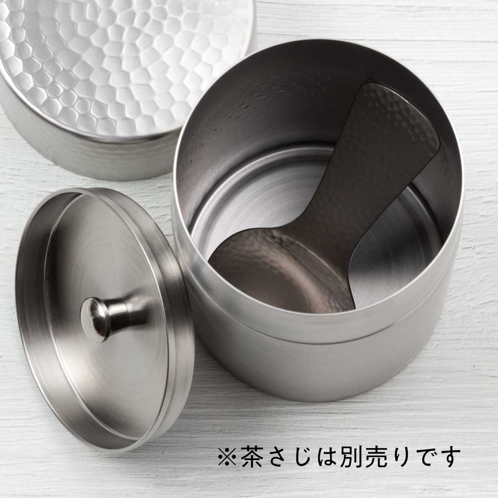 ステンレス茶筒 槌目つや消し(大)高さ11.7cm 落ち着きのある金属の質感 汚れがつきにくく清潔 茶葉の風味が長持ち 新潟県の金属製品