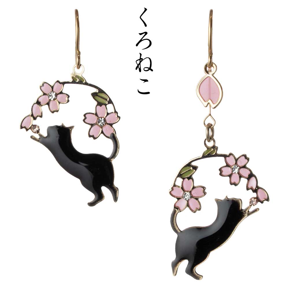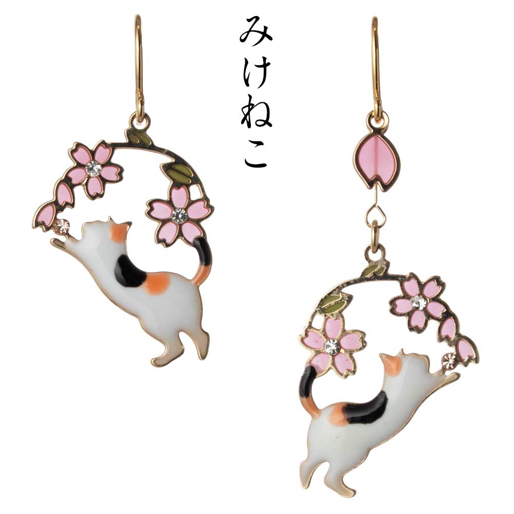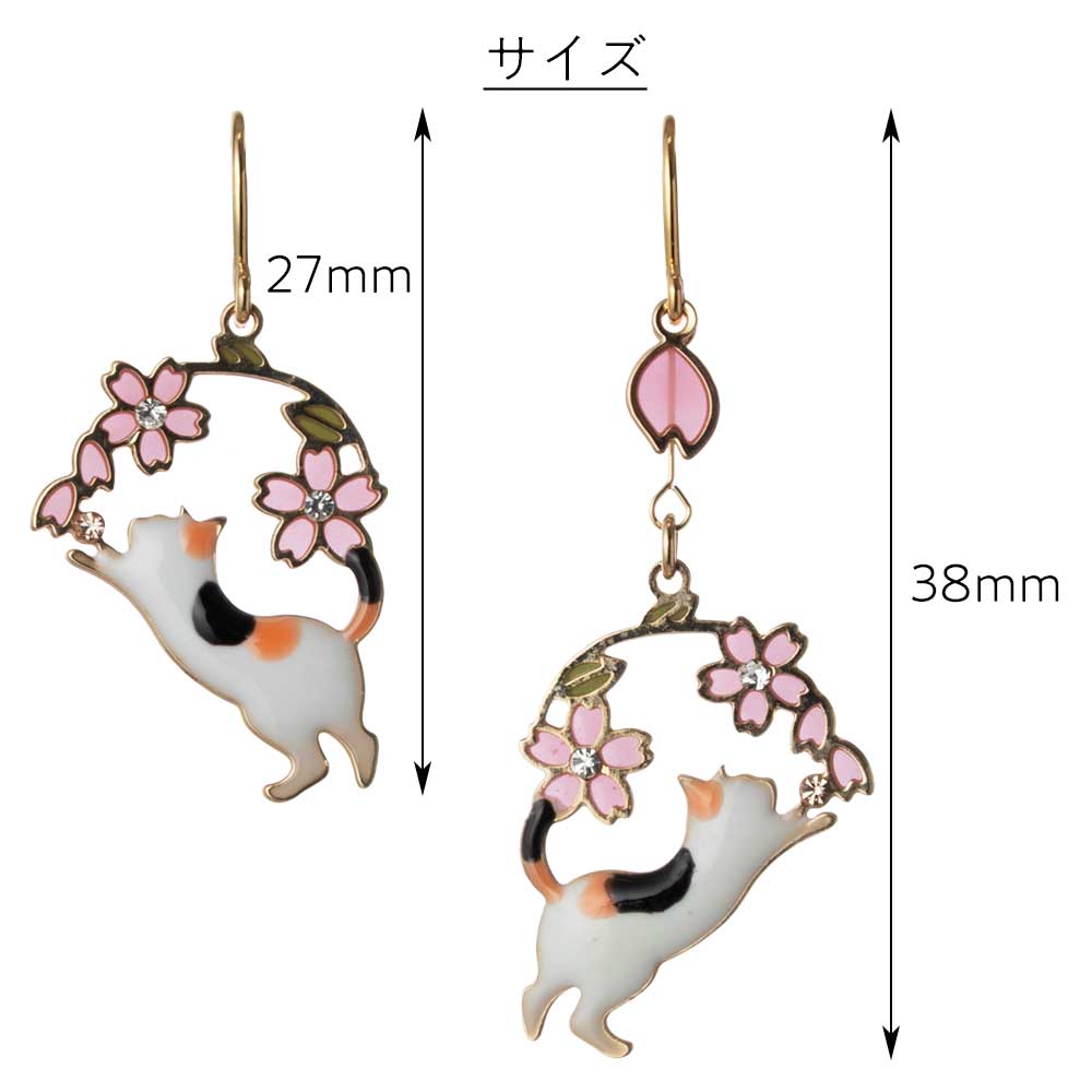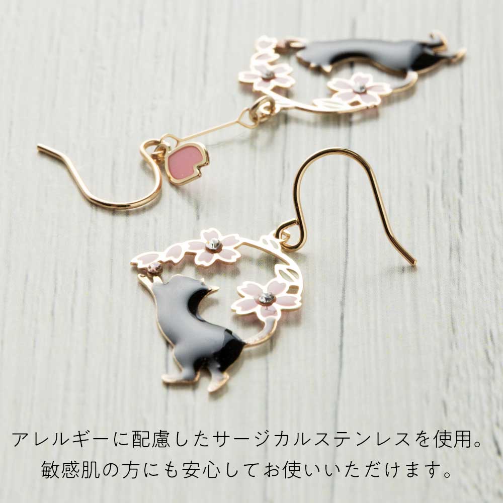 アクセソワール ひとひら猫と春の夢ピアス 桜ゆらり、耳元に春色のきらめき アレルギー反応の出にくいサージカルステンレス チャーム27mm・38mm 日本製