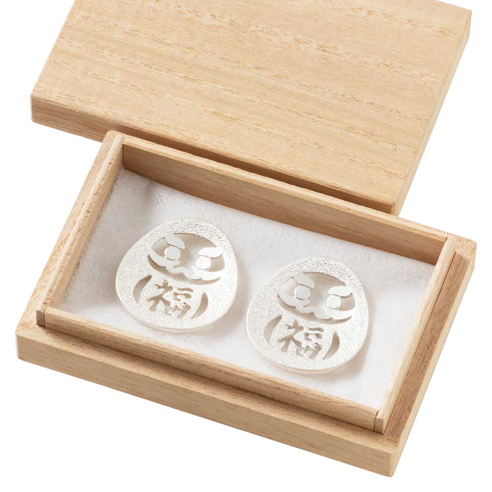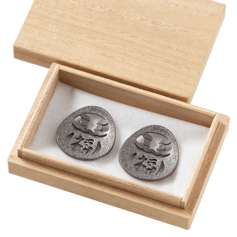 縁起物として親しまれる“だるま”をモチーフにした、錫製の箸置きペアセット。
