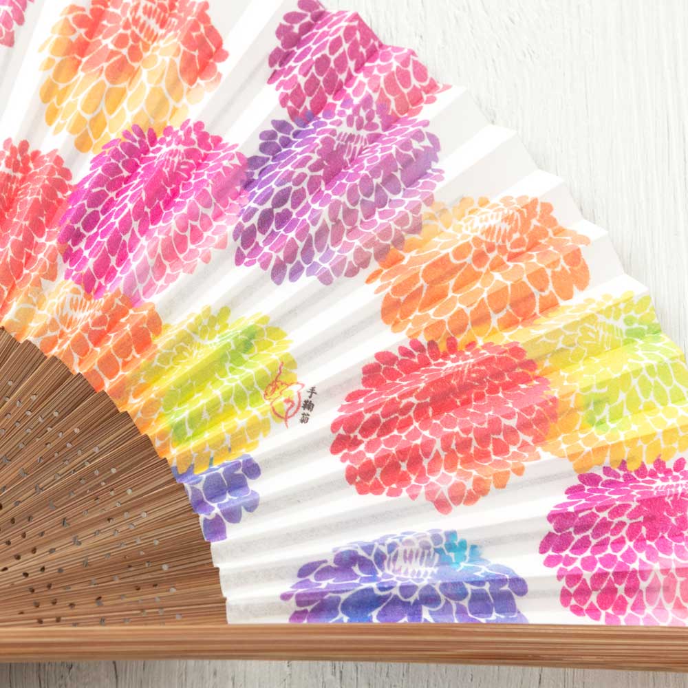 和詩倶楽部 女房扇 手鞠菊 和紙の扇子 六寸五分 約20cm やや小ぶり 女性用の定番サイズ レディース 和柄 手張り製 国産扇骨35本 日本製