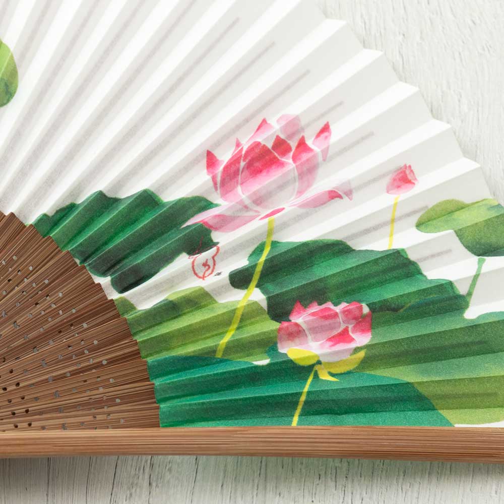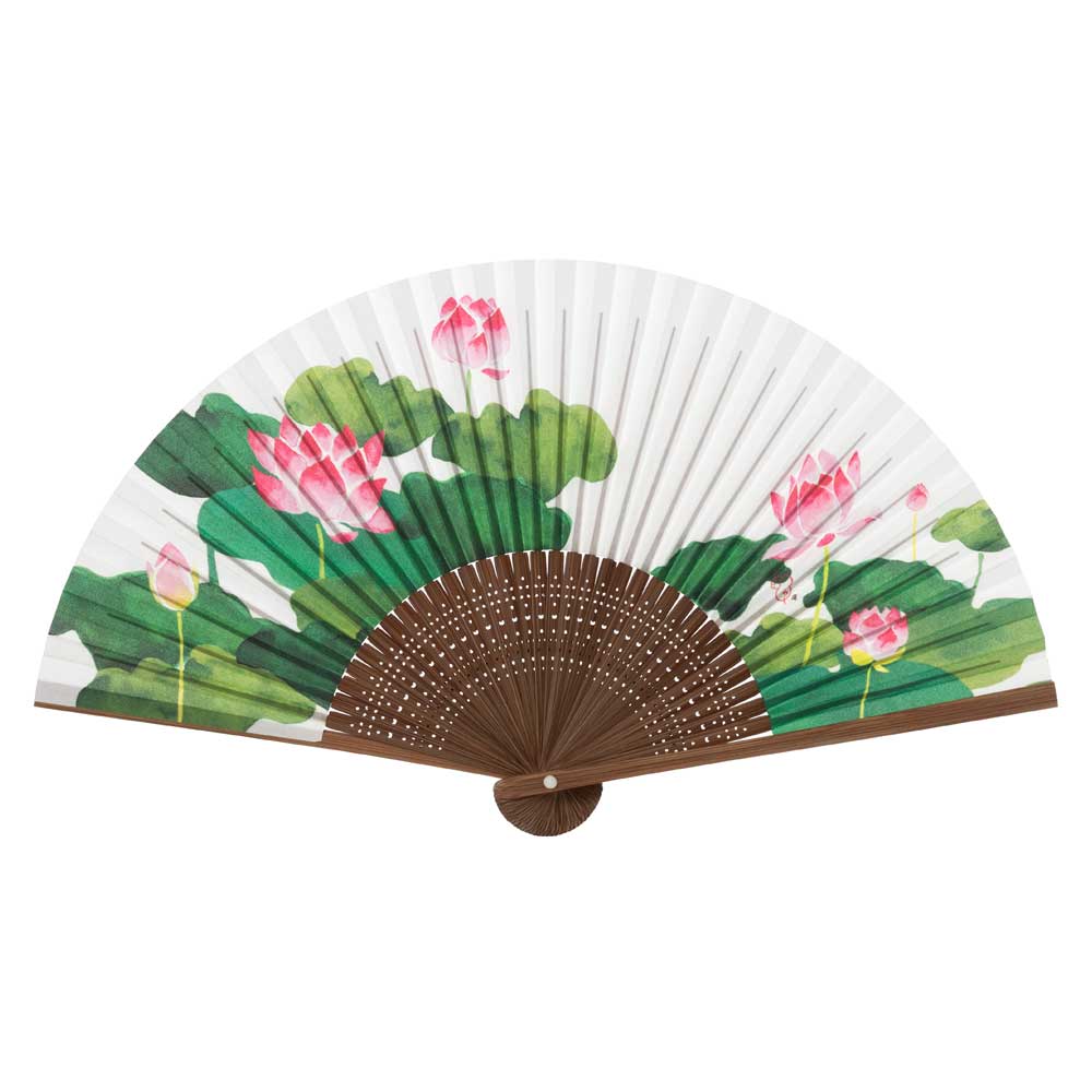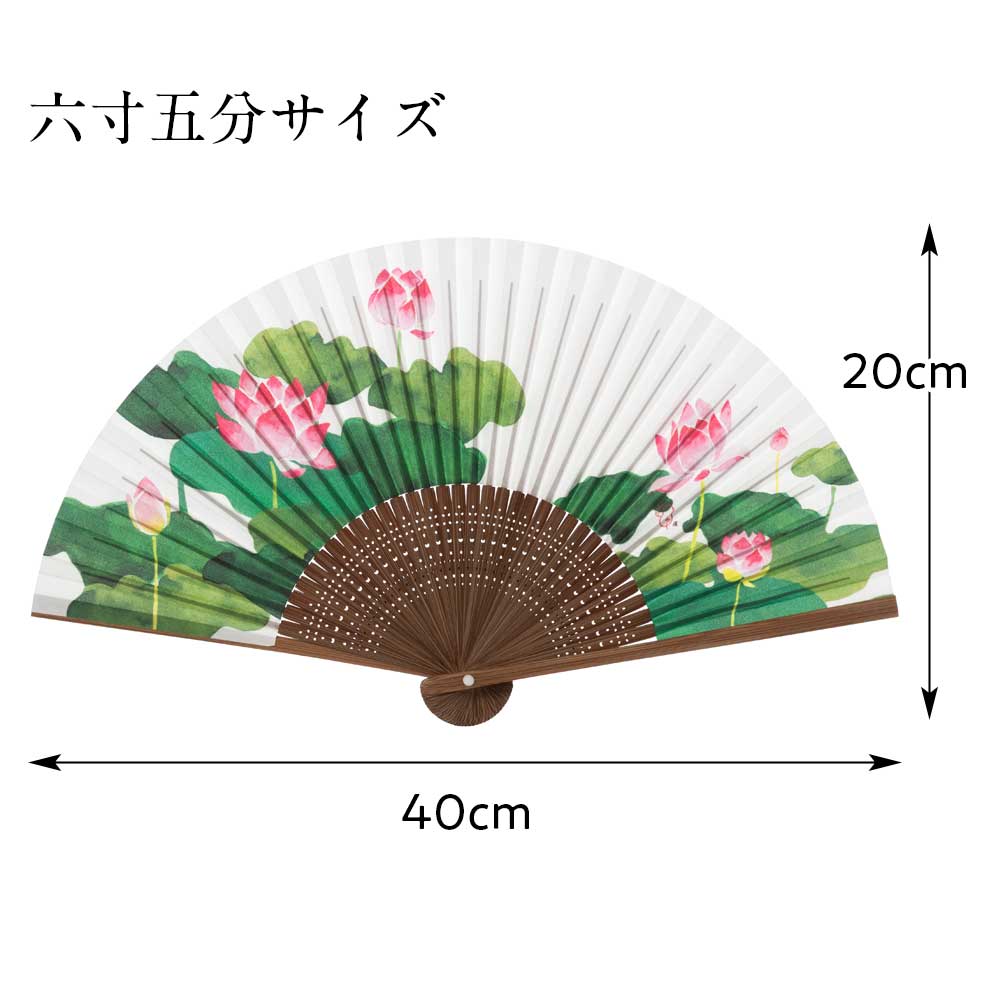 和詩倶楽部 女房扇 蓮 和紙の扇子 六寸五分 約20cm やや小ぶり 女性用の定番サイズ レディース 和柄 手張り製 国産扇骨35本 日本製