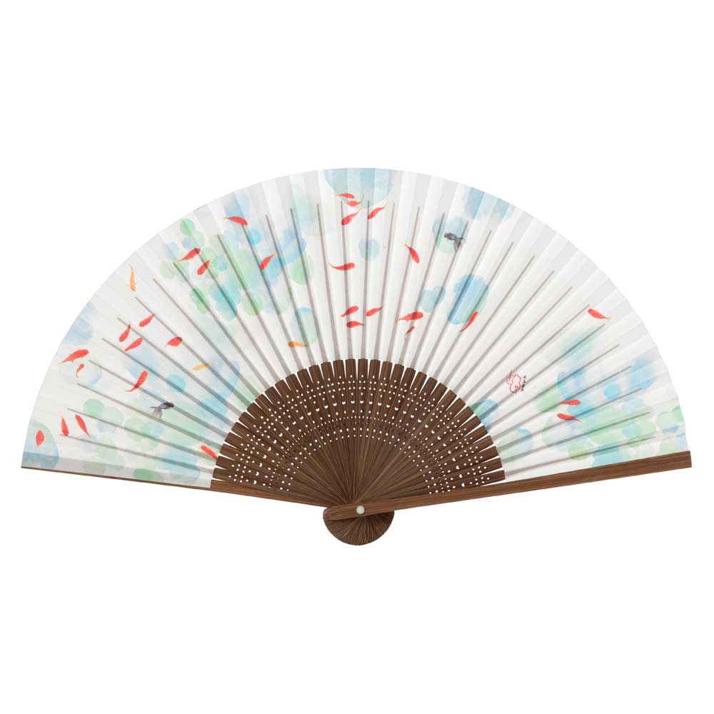 和詩倶楽部 女房扇 水玉金魚 和紙の扇子 六寸五分 約20cm やや小ぶり 女性用の定番サイズ レディース 和柄 手張り製 国産扇骨35本 日本製